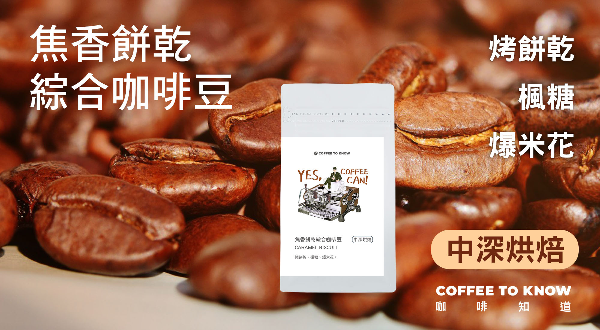 風味:豆袋一打開便能聞到一陣烤餅乾的香氣,尾韻甘甜,適合搭配牛奶,屬於中深烘焙的綜合咖啡豆。