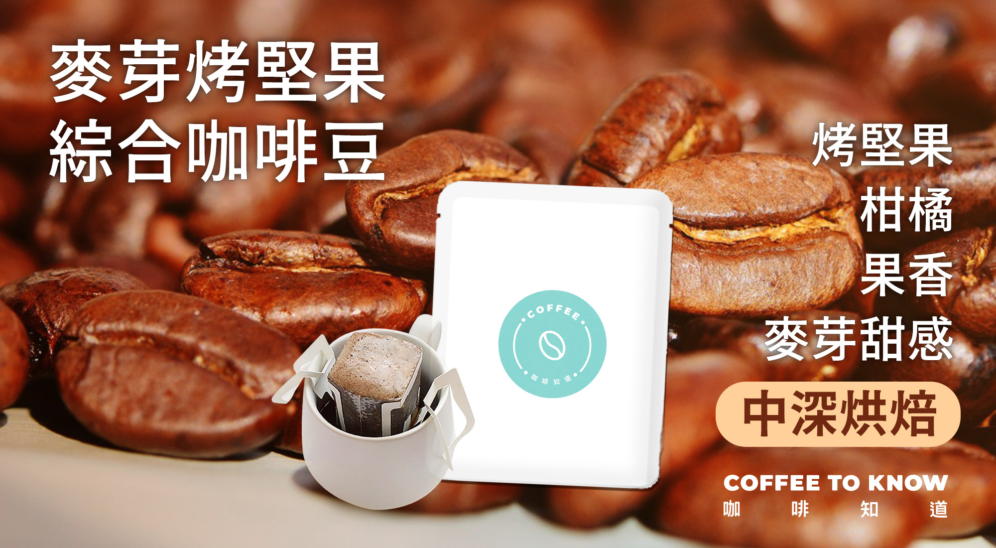 口感純淨,屬於中深烘焙的綜合咖啡豆。